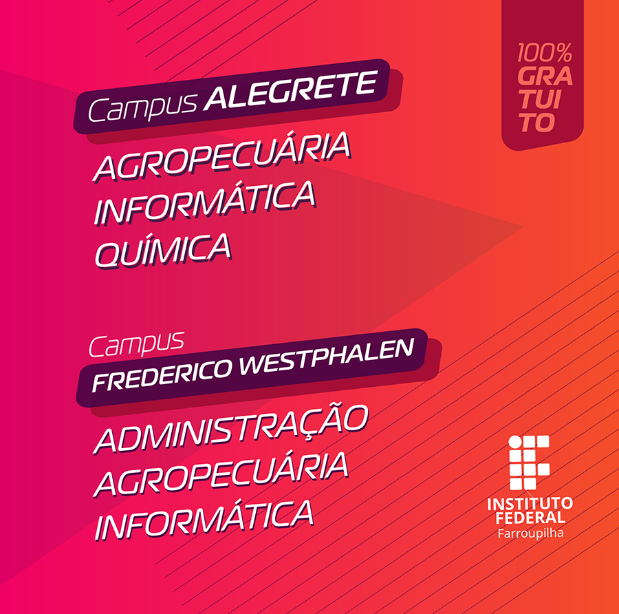 Até 23/12, o IFFar recebe inscrições para o Processo Seletivo 2021 dos Cursos Técnicos Integrados, voltados para quem quer cursar o Ensino Médio e receber uma formação técnica ao mesmo tempo. As inscrições são gratuitas e online. A seleção será por sorteio eletrônico. Se você tem dúvidas sobre o PS, confira os materiais que o IFFar preparou para te ajudar.