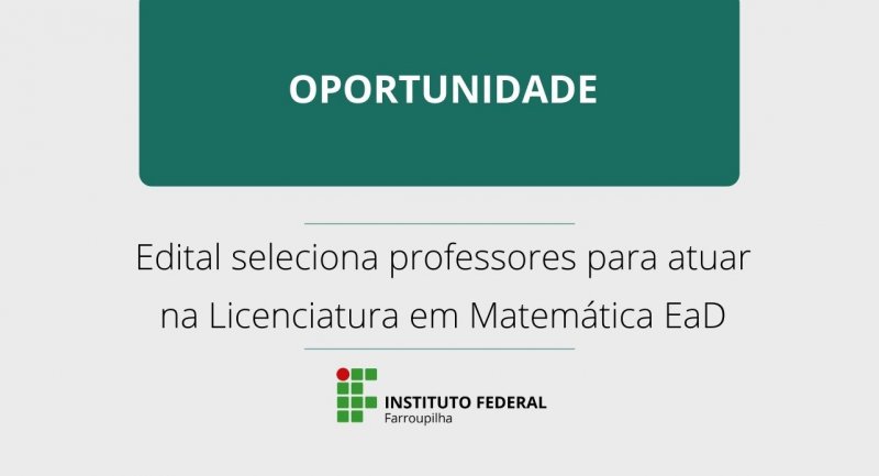 O IFFar está com inscrições abertas para um edital de seleção de professores formadores para o Curso de Licenciatura em Matemática EaD. No total, são oferecida nove vagas para professores do Instituto Federal Farroupilha. O edital prevê o pagamento de bolsas.