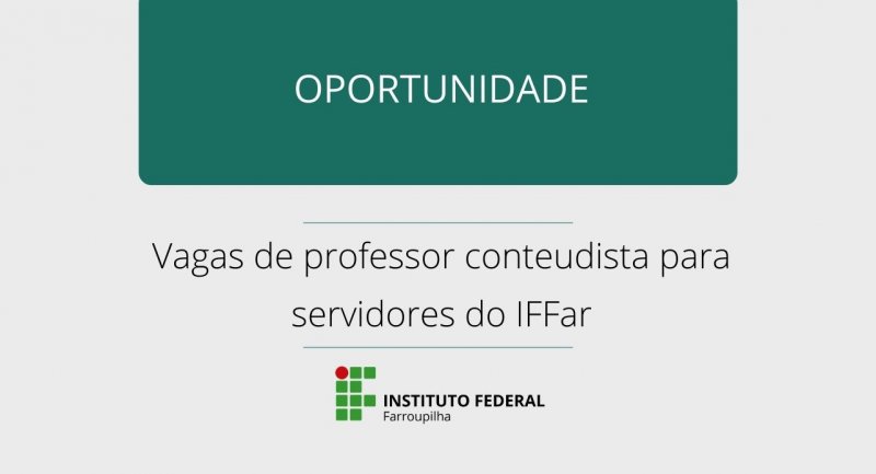 São disponibilizadas 20 vagas para servidores do IFFar com formação nas áreas de Língua Portuguesa, Educação Física, Artes, Matemática, História, Geografia, Ciências Sociais, Filosofia, Química, Física e Ciências Biológicas. A remuneração é de R$40,00 por hora trabalhada.