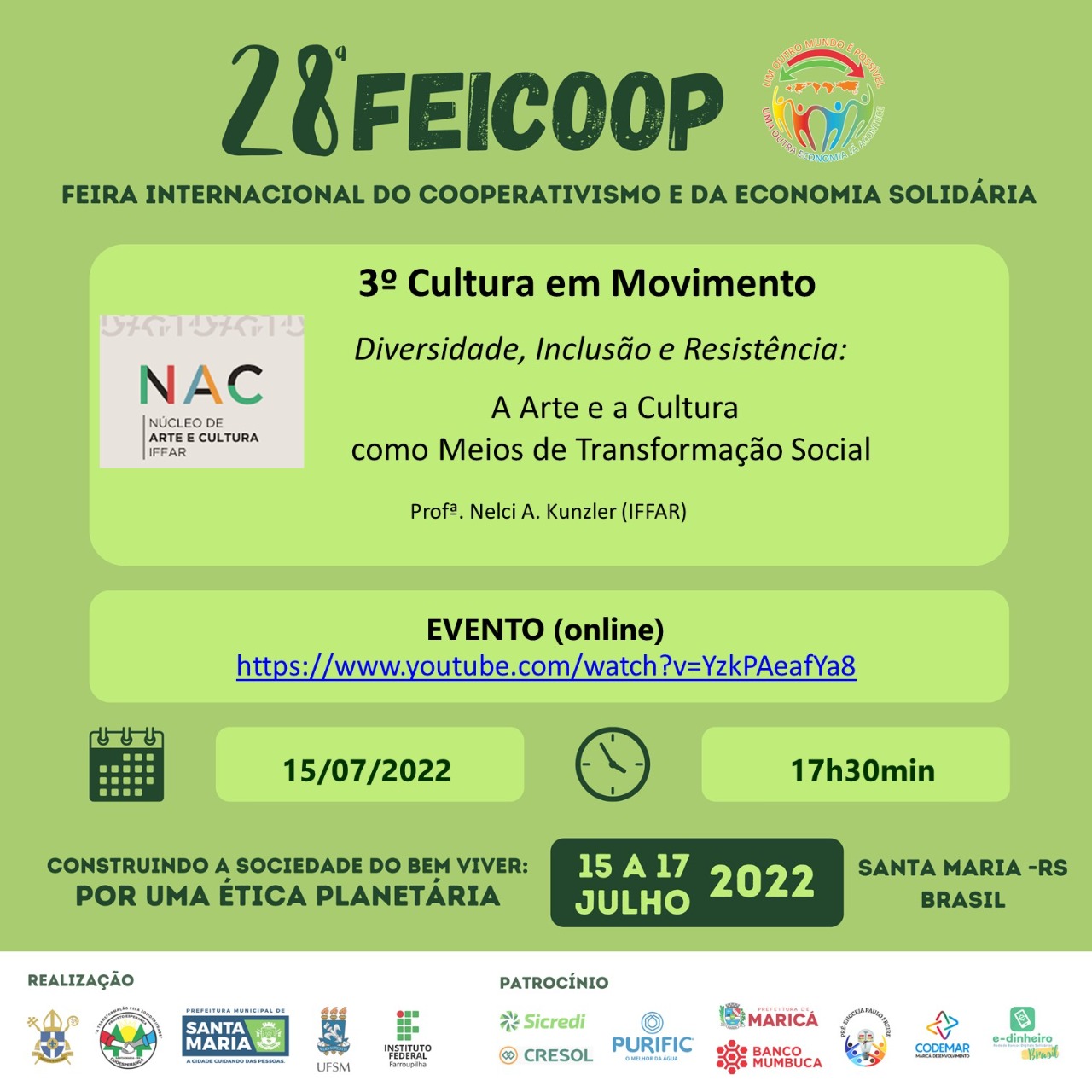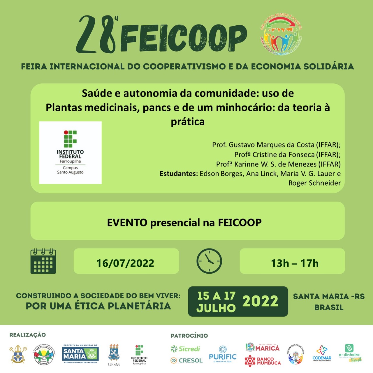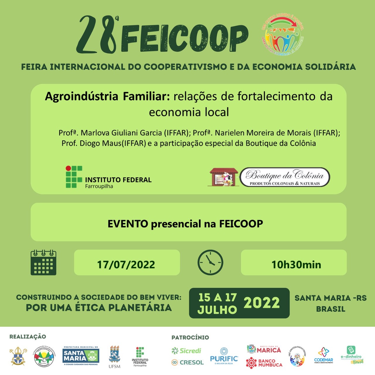 O Instituto Federal Farroupilha é uma das instituições organizadoras da 28ª Feira Internacional do Cooperativismo e da Economia Solidária (Feicoop) e integra a programação de atividades formativas e culturais do evento.