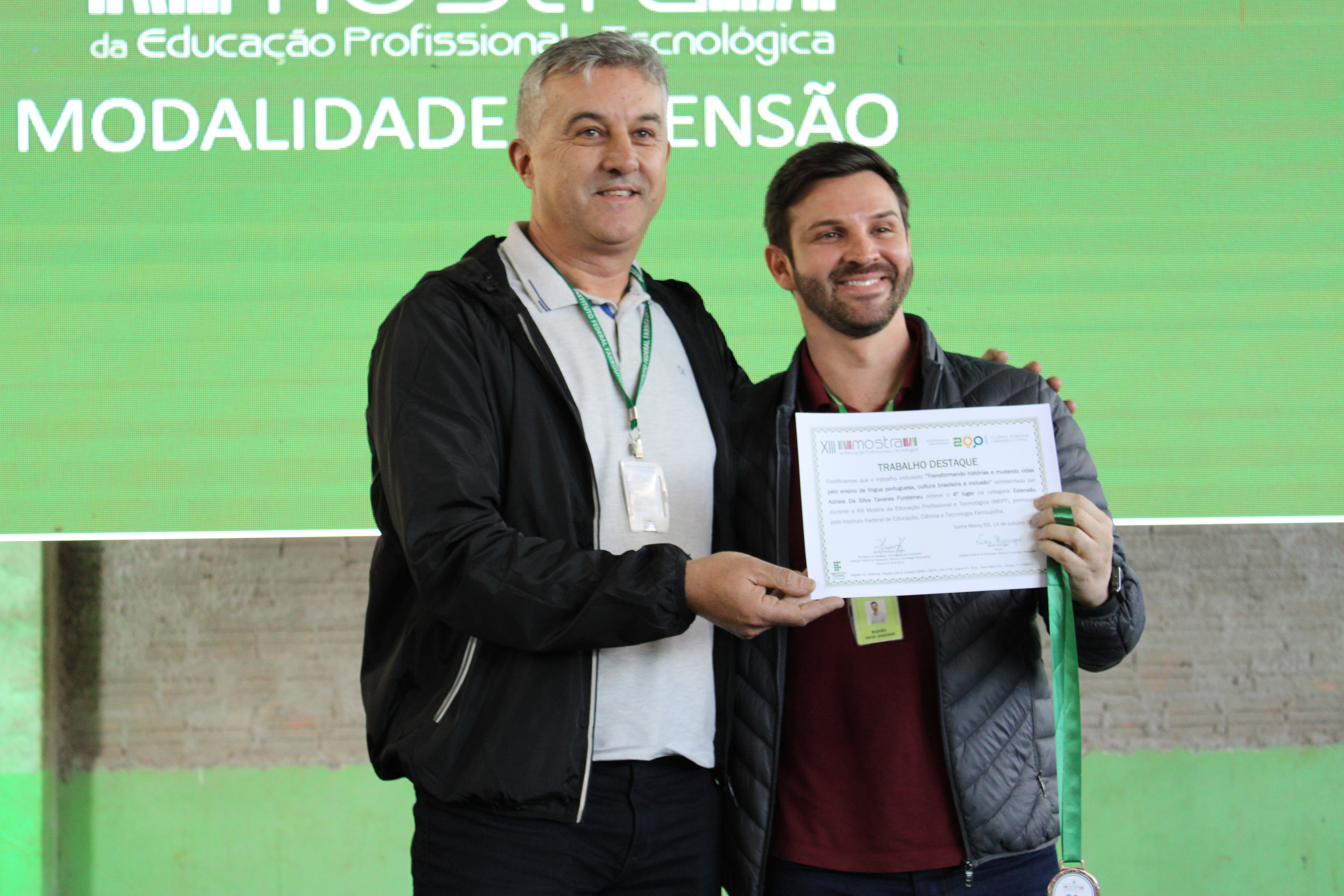 - 1º lugar – Marco Aurélio Dambros Batista – Campus Panambi. Título do trabalho: English conversation club.