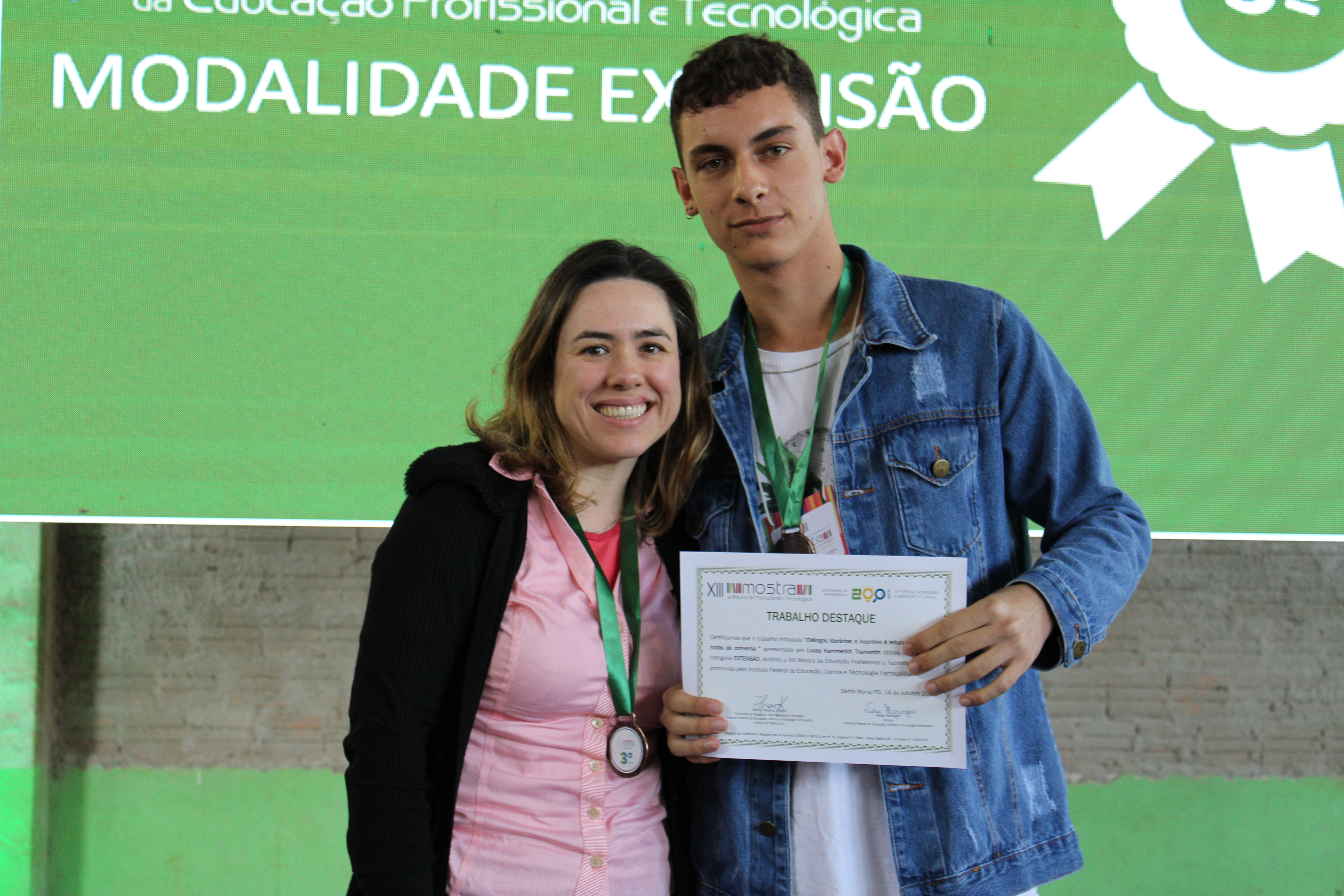 Foto: aluna do IFFar recebe premiação por projeto apresentado no Bye Bye Boss
