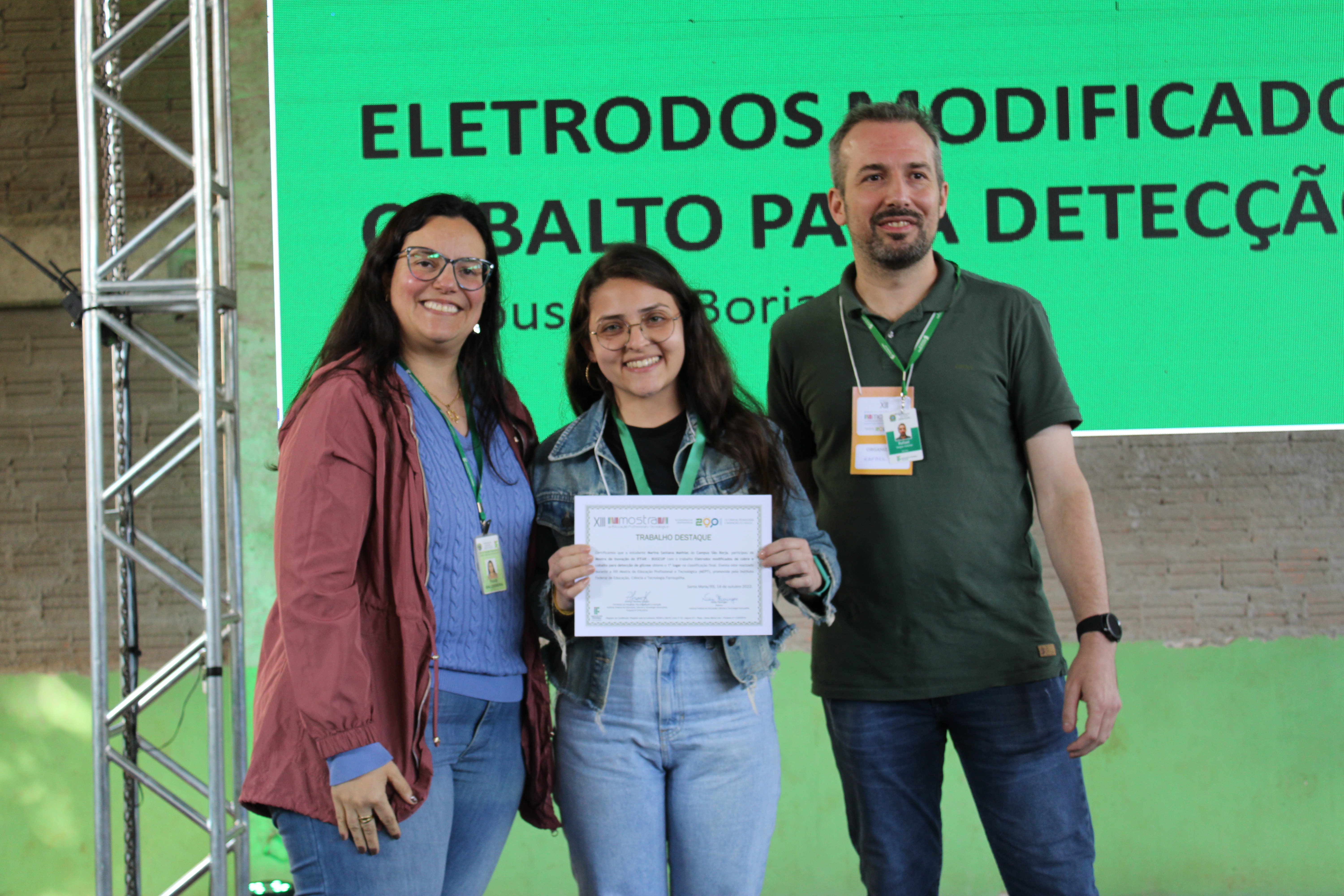 - 1º lugar – Eletrodos modificados de cobre e cobalto para detecção de glicose – Marina Santana Mathias – Campus São Borja