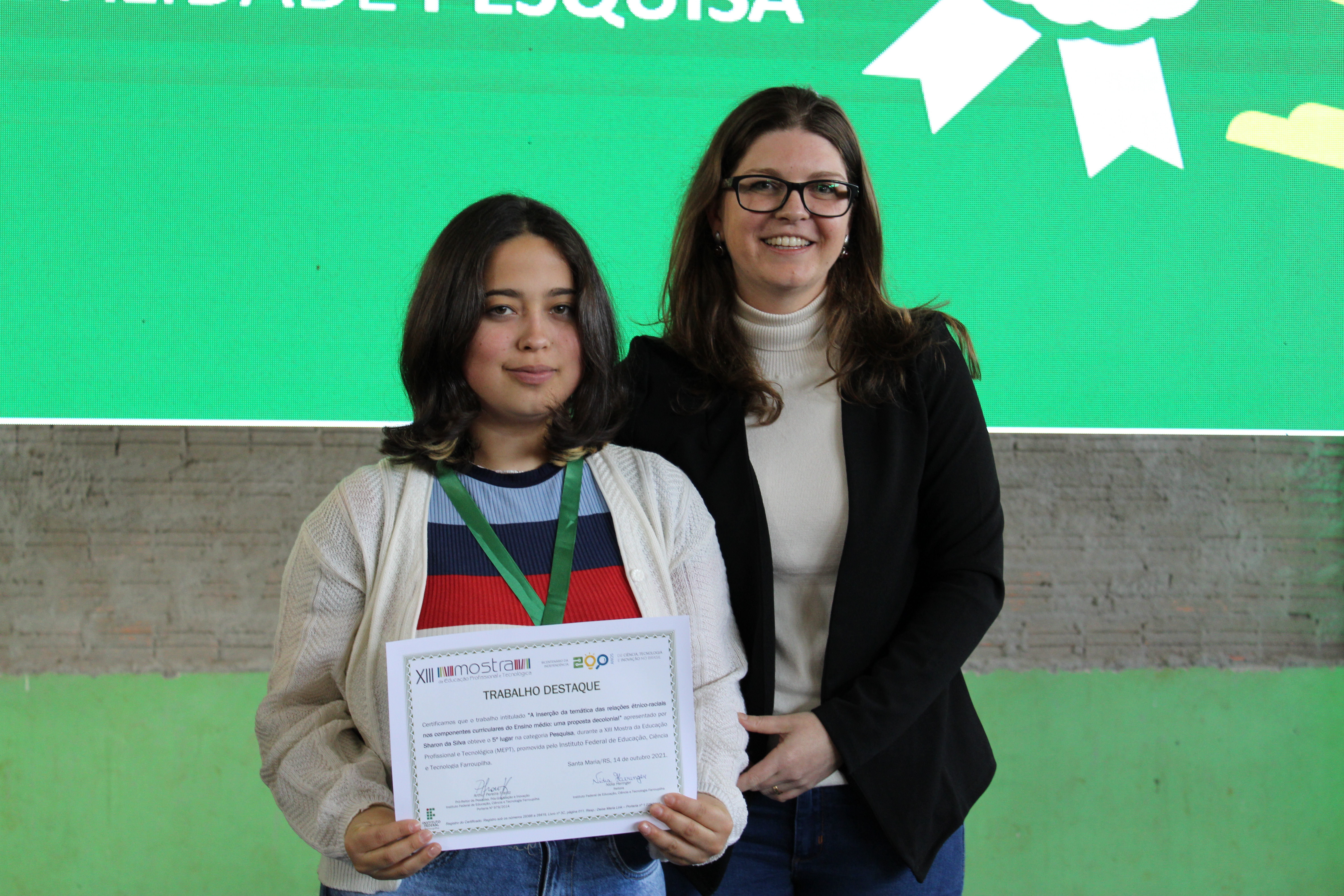 - 5º lugar – Sharon Silva – Campus São Borja. Título do trabalho: A inserção da temática das relações étnico-raciais nos componentes curriculares do Ensino Médio: uma proposta decolonial.
