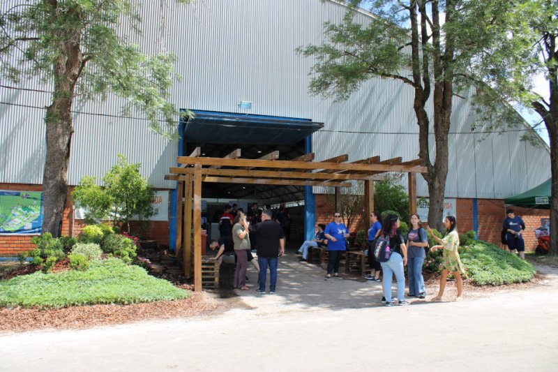 Foto: o estande do IFFar está localizado nos fundos do pavilhão do Centro de Eventos da UFSM