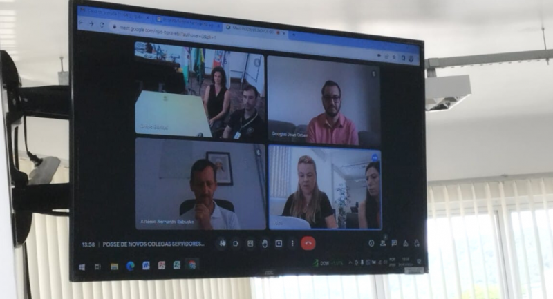 Foto: Douglas Orben e Sabrina Finatto tomaram posse de forma remota. Também participaram online o Diretor Geral do Campus São Borja, Artênio Bernardo Rabuske, e o Diretor Geral do Campus Frederico Westphalen, Bruno Batista Boniati.