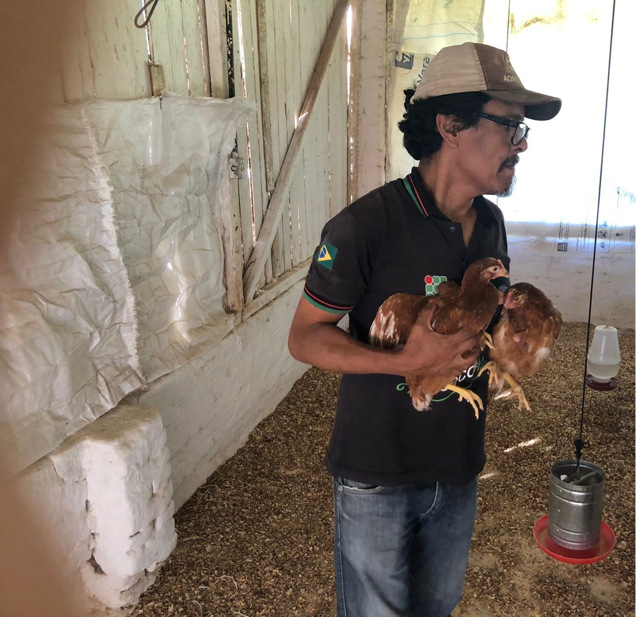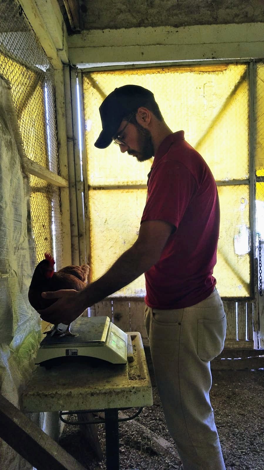 Bolsista do Gepav Filipe Lira desenvolve atividades relacionadas à avicultura