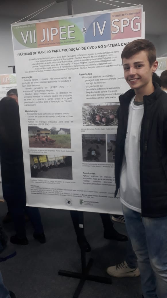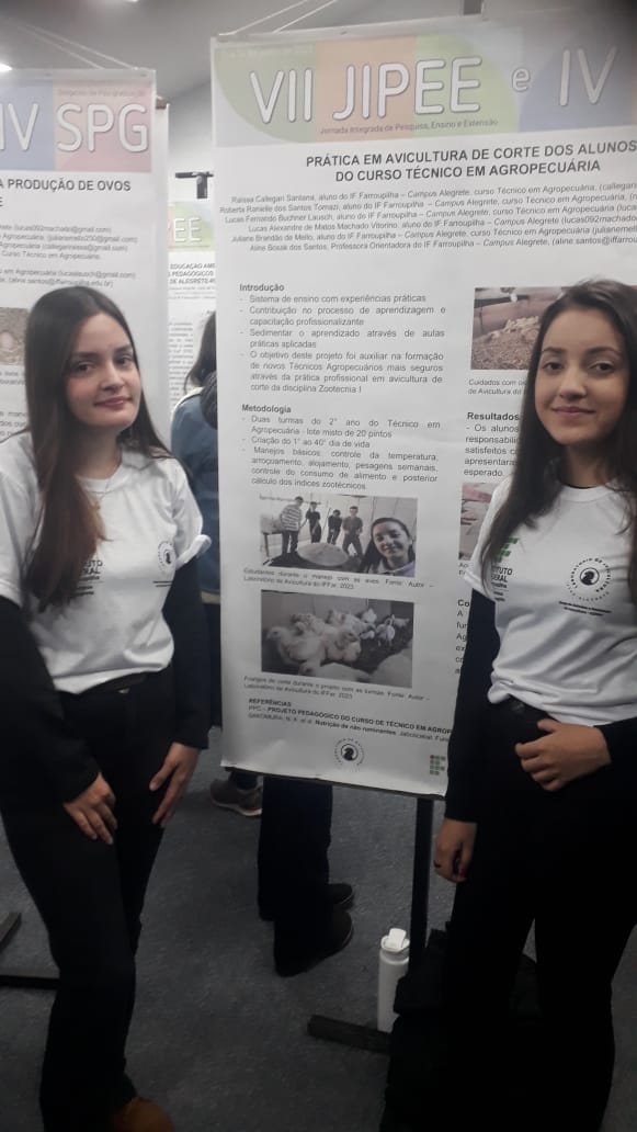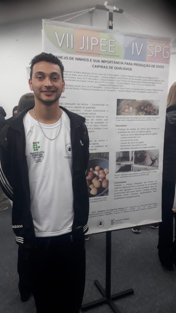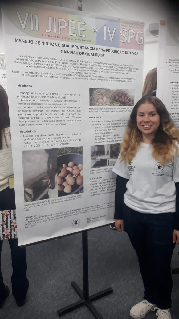 Gepav – além da professora Aline Bosak dos Santos, o Grupo de Estudos e Pesquisa em Avicultura do Campus Alegrete também é coordenado pelo servidor técnico-administrativo em educação Aires Dornelles. Fazem parte do grupo ainda o professor Gabriel Estivallet e dois alunos bolsistas do curso de bacharelado em Zootecnia. Outros cinco alunos atuam como bolsistas de projetos de extensão desenvolvidos pelo Gepav.