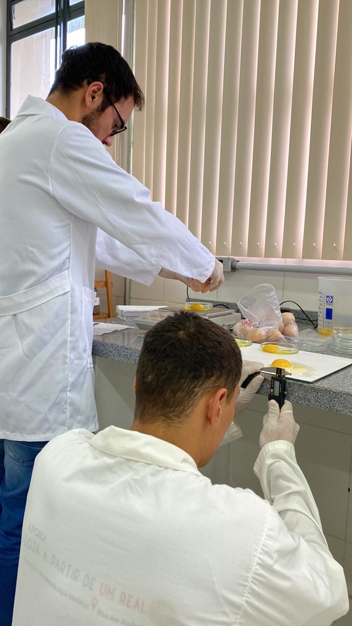 Bolsistas do Gepav analisam qualidade interna de ovos oriundos do sistema caipira