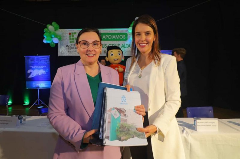 Foto: prefeita de Cruz Alta entrega à reitora do IFFar documento de 500 páginas contendo proposta da prefeitura para implantação de campus