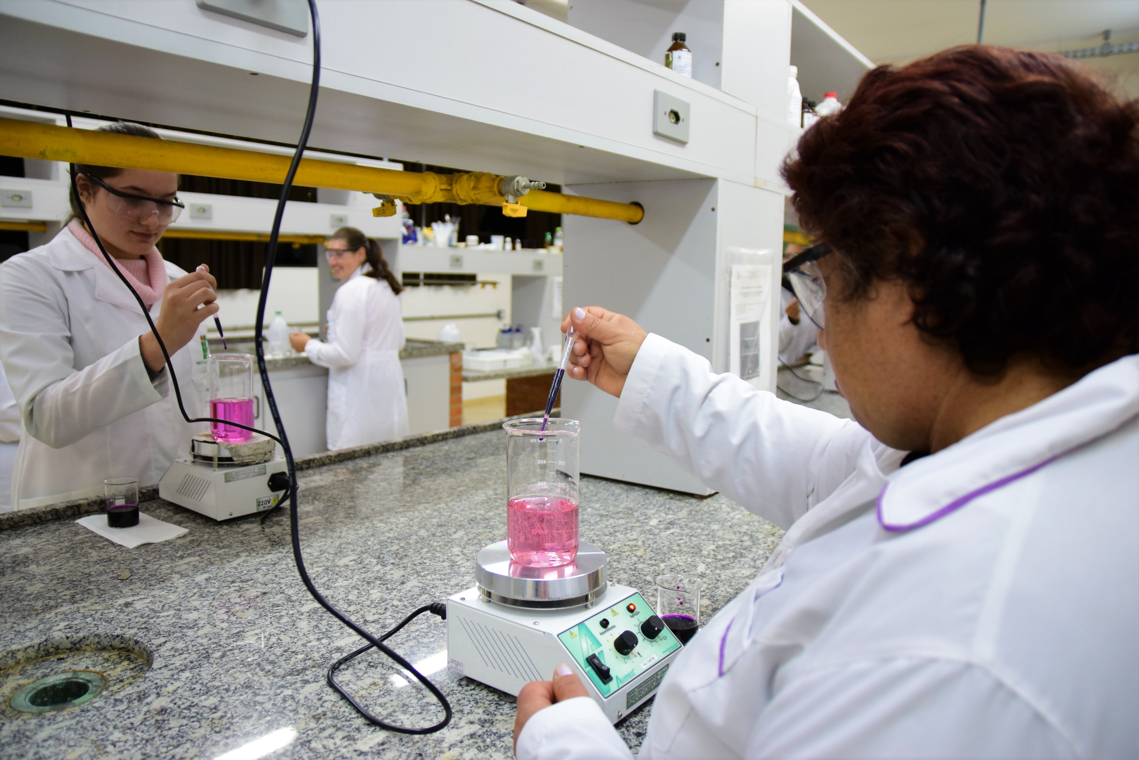 Estudantes do curso de Licenciatura em Química utilizam laboratório no Campus São Vicente do Sul