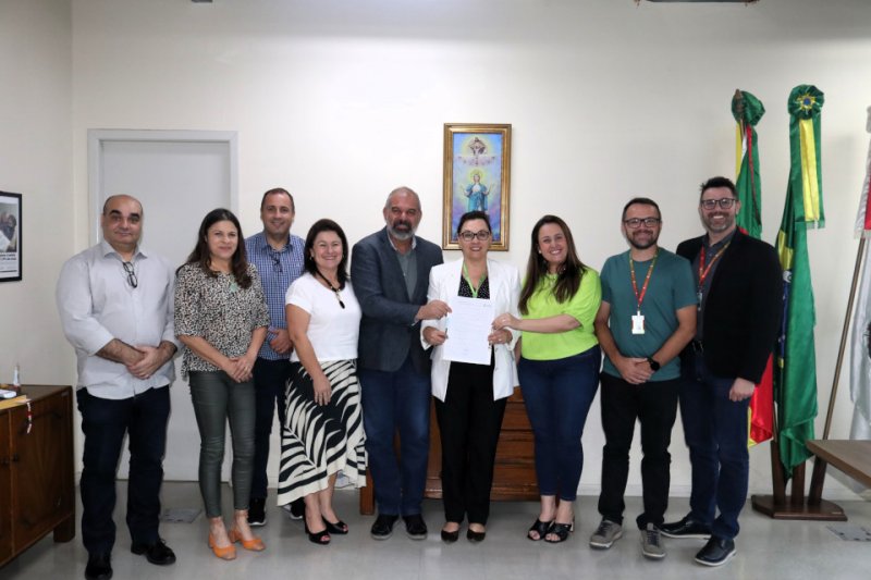 Foto: vice-prefeito de Santa Maria realiza entrega simbólica da lei nº 6.834 para a reitora do IFFar nesta segunda-feira (27)