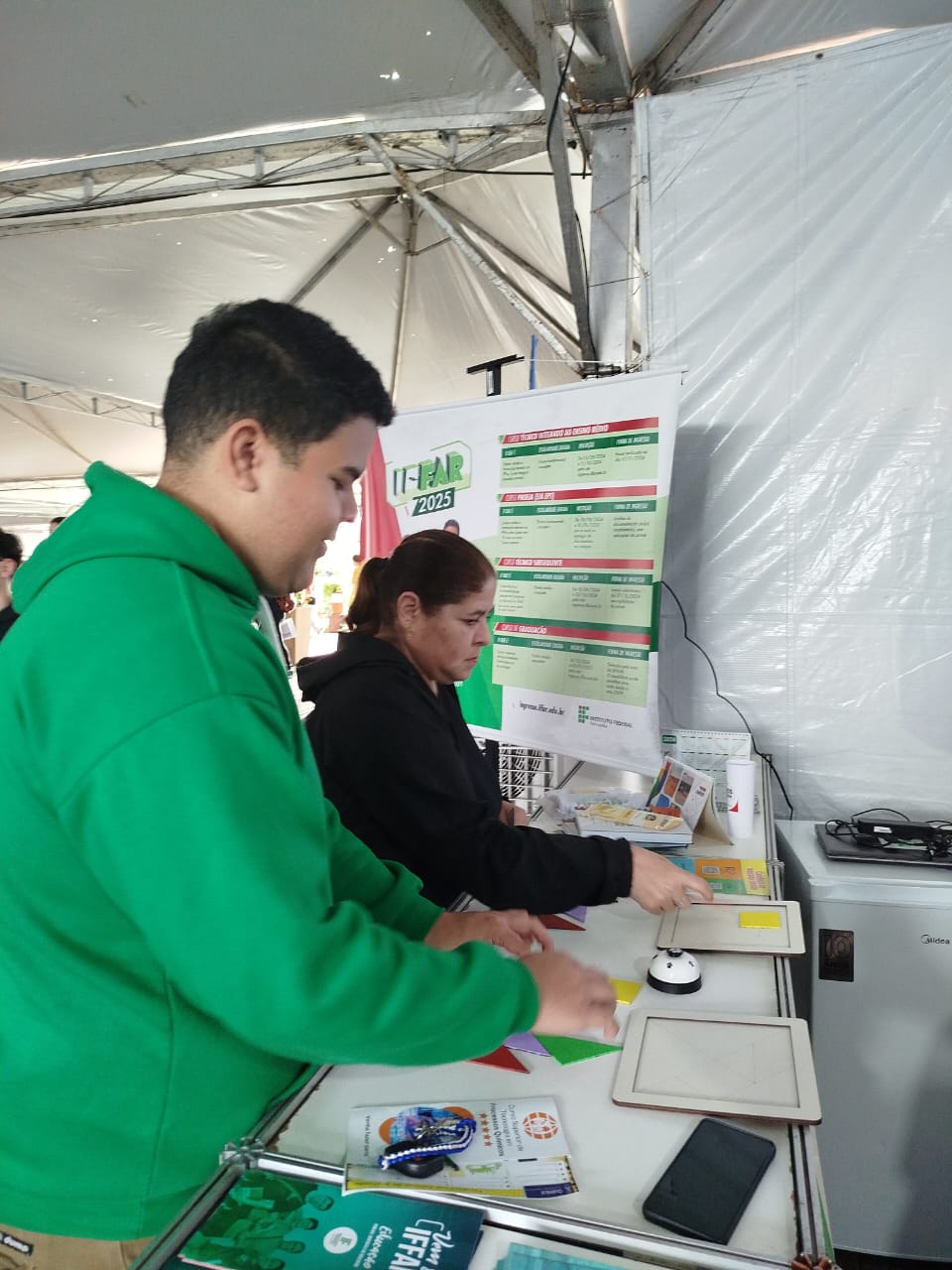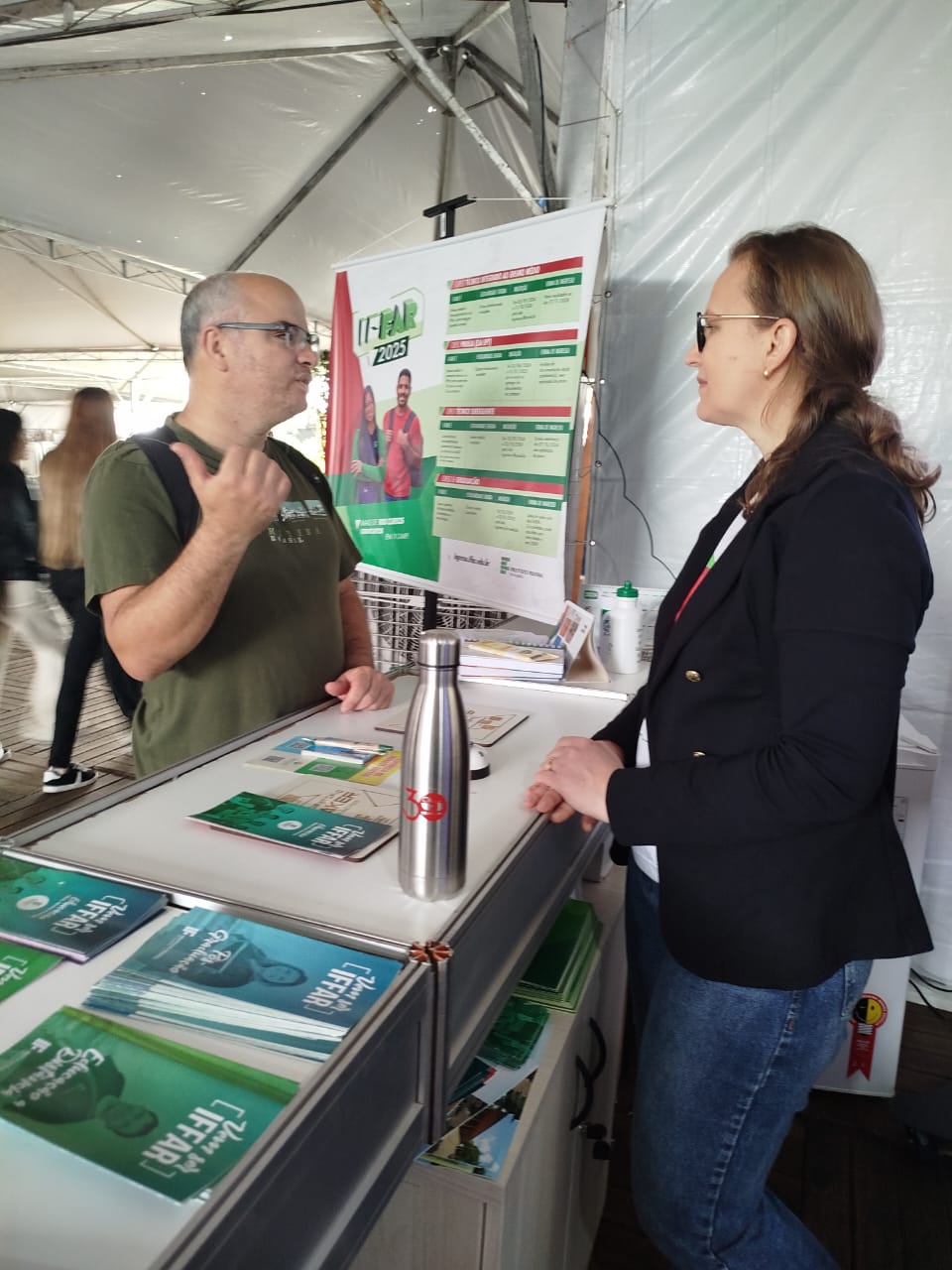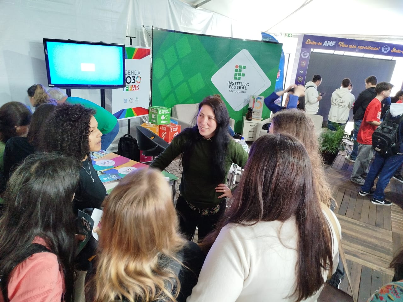 O IFFar está presente no evento com um estande de divulgação institucional. No espaço, a instituição distribui material de divulgação dos processos seletivos que estão com inscrições abertas. Também são realizadas ações institucionais, como a divulgação dos Objetivos de Desenvolvimento Sustentável (ODS).
