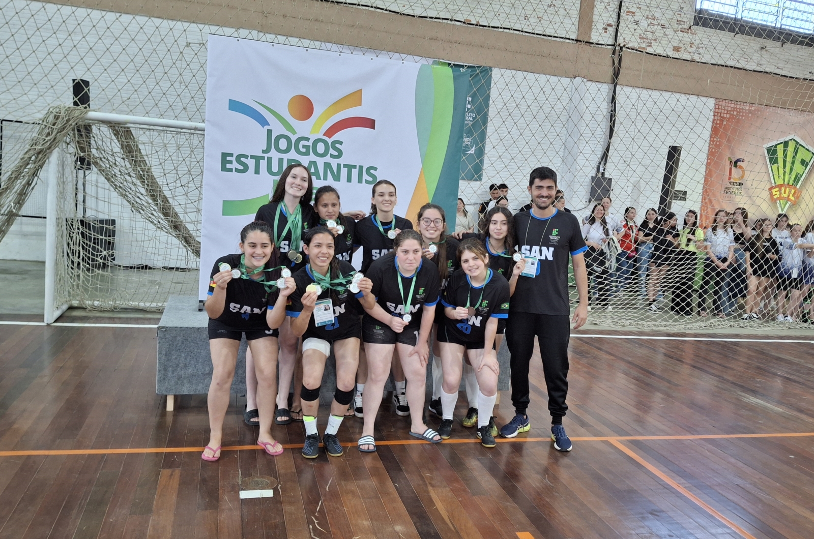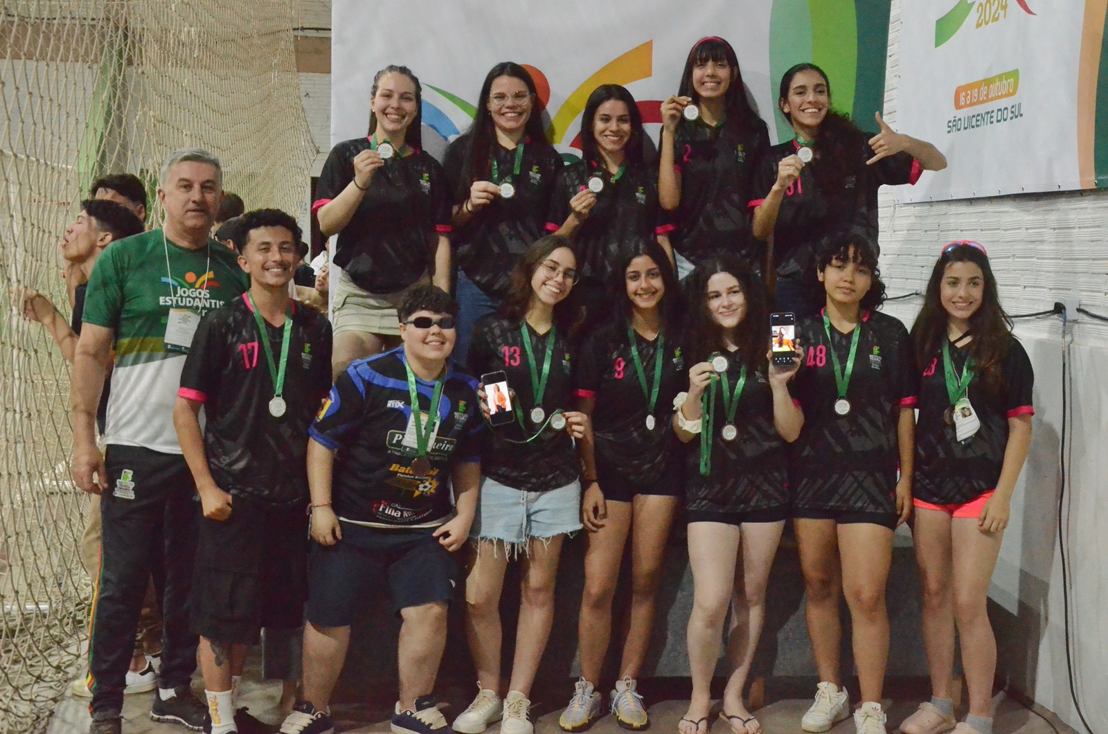 Foto: equipe de futsal feminino do Campus São Vicente do Sul ficou em 1º lugar no Jeif 2024 - unidade foi a que mais obteve ouros