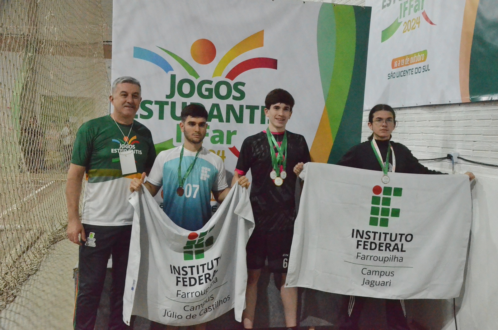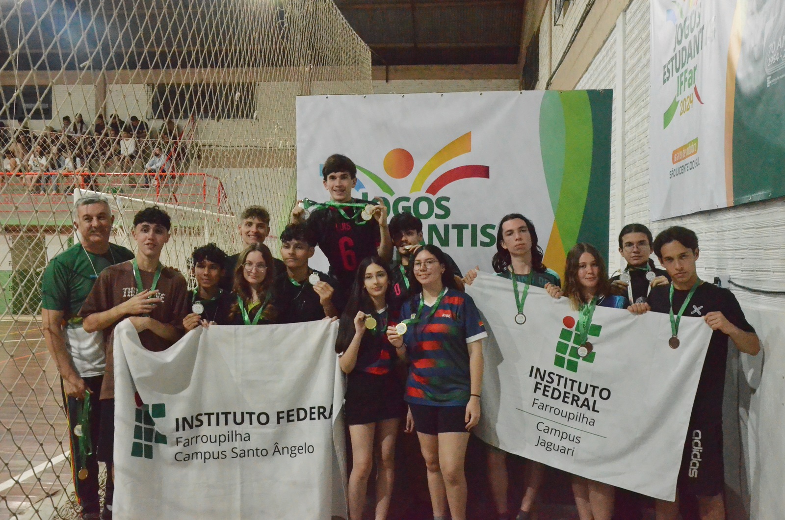 Estudantes de todos os campi do IFFar participaram do 12ª Jeif. As disputas ocorreram no Campus São Vicente do Sul e no Ginásio Municipal de Esportes. Contando com a equipe técnica, que incluiu comissão organizadora, professores, servidores, equipes de saúde, arbitragem, entre outros, o número de participantes no Jeif 2024 passou de 600 pessoas.