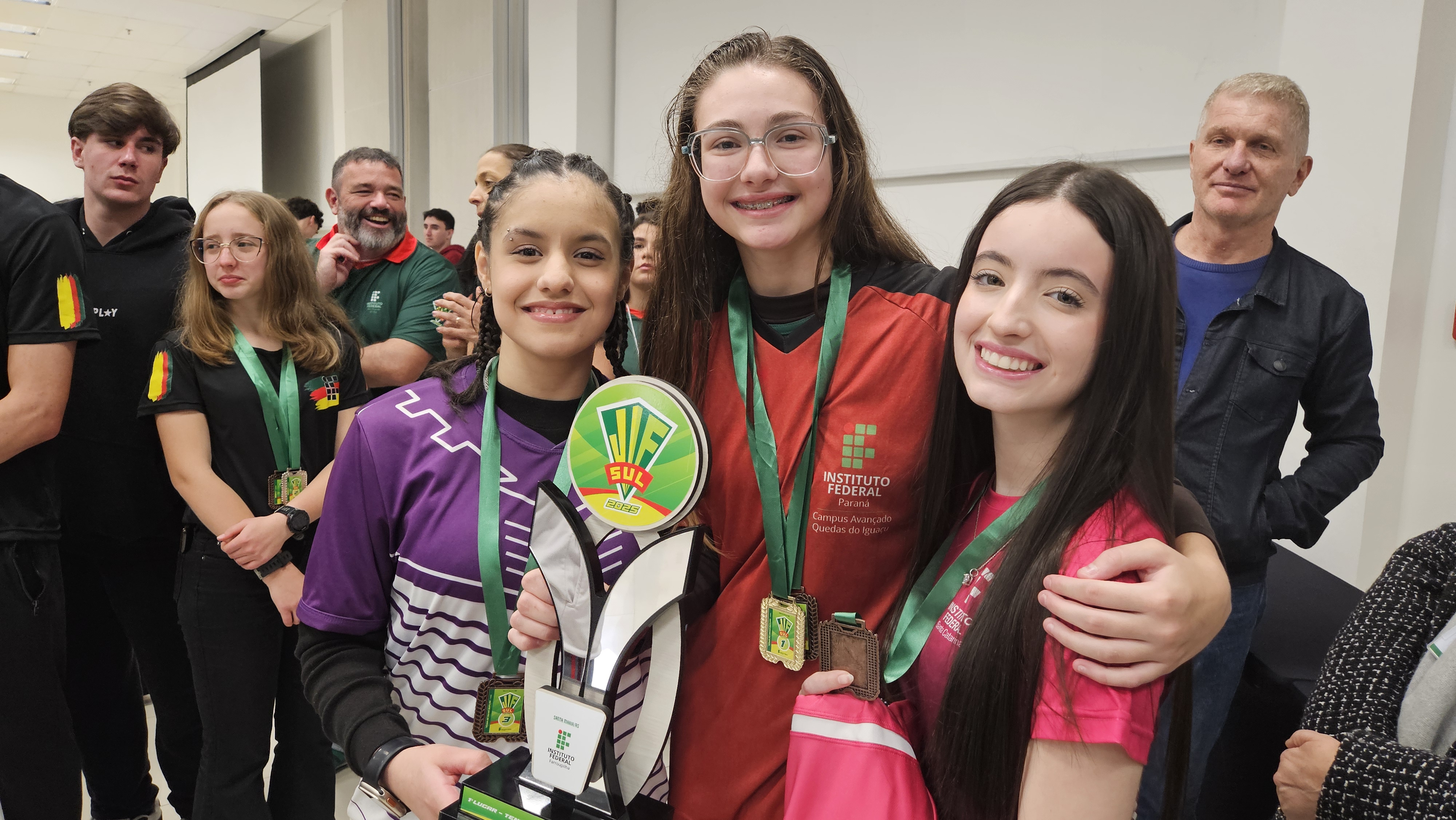 Confira abaixo os vencedores premiados durante o terceiro dia de atividades do JIFSul 2025. A tabela completa está disponível no Boletim nº 3, nos anexos desta notícia. Confira também a galeria de imagens.