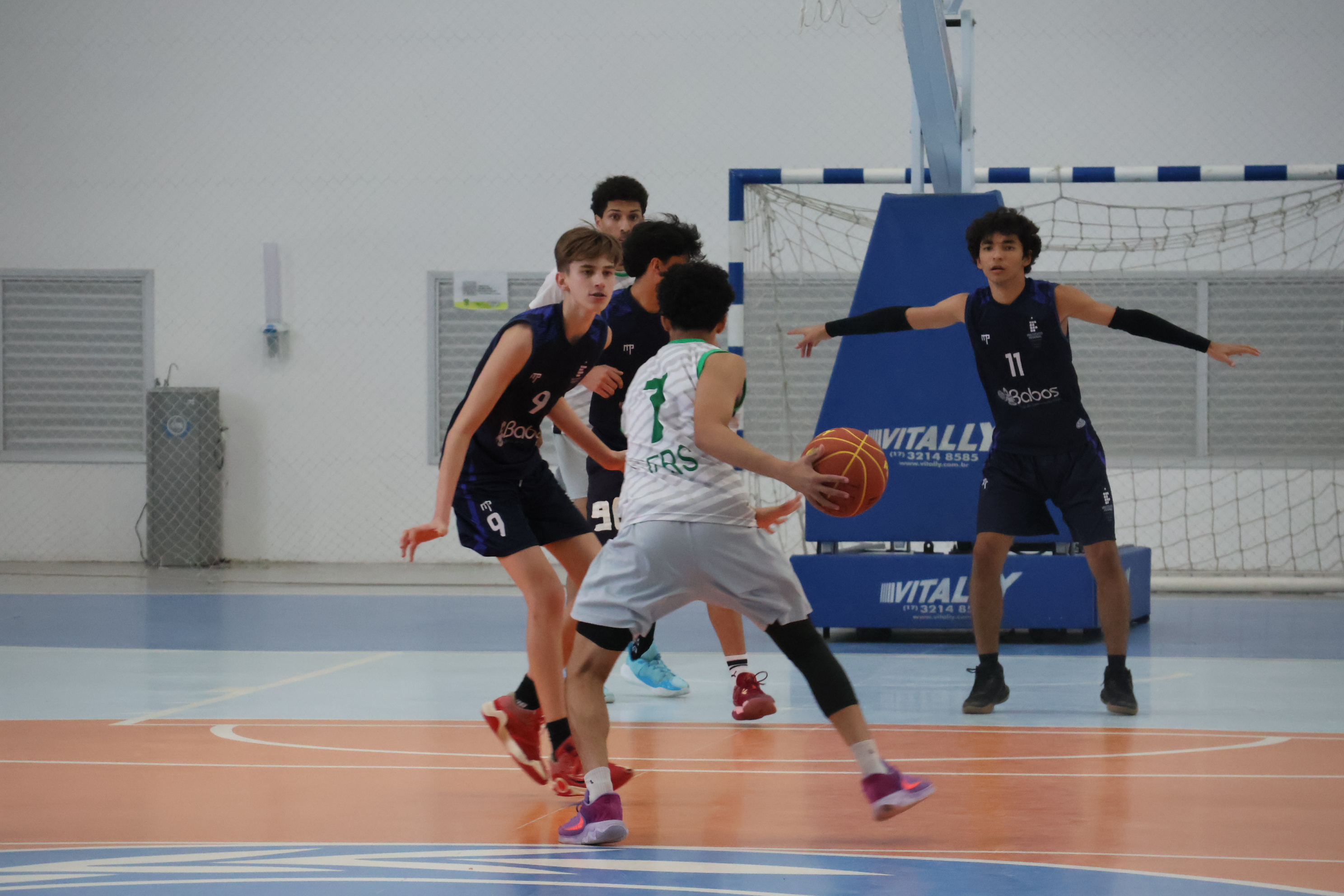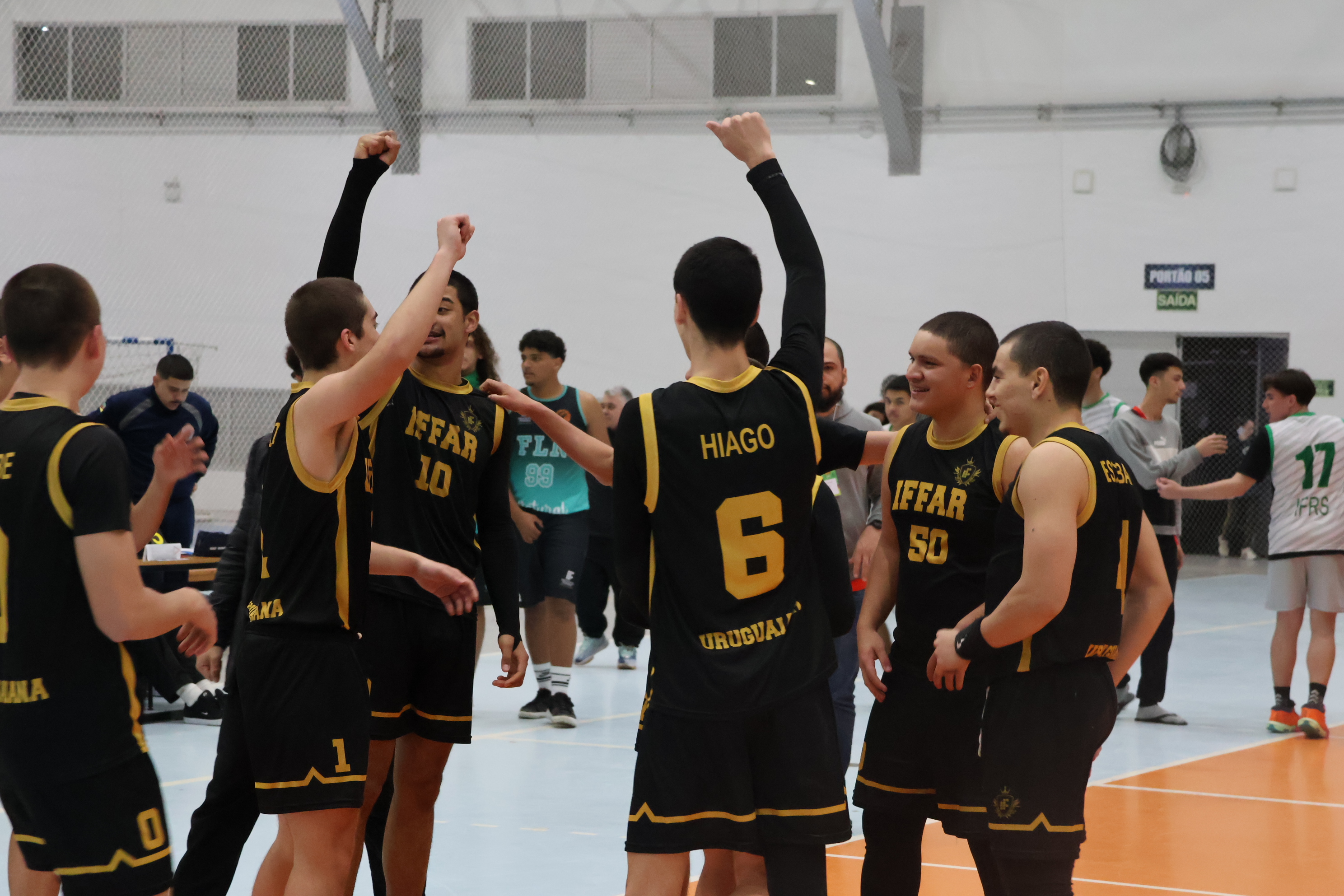 Foto: estudantes do IFRS e do IFFar disputam semifinal do basquete durante o JIFSul 2025
