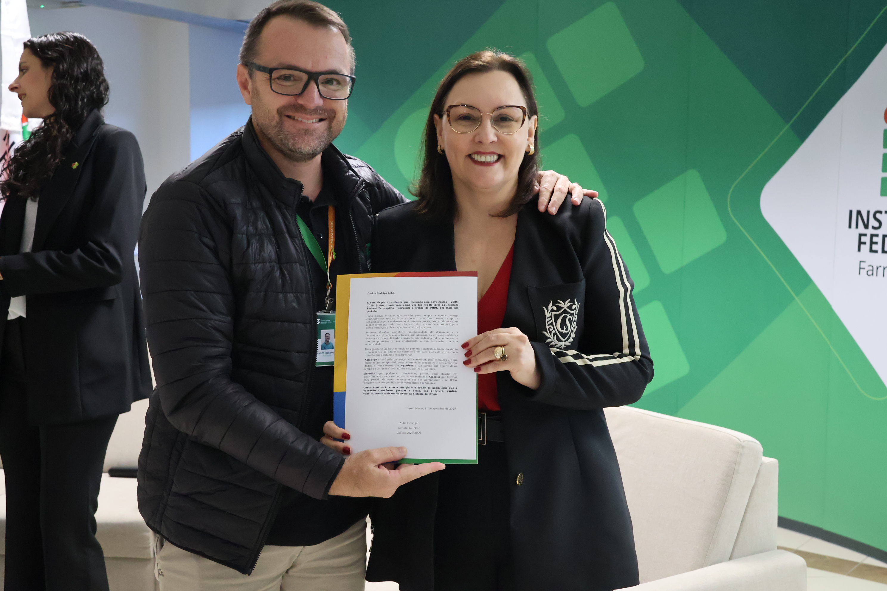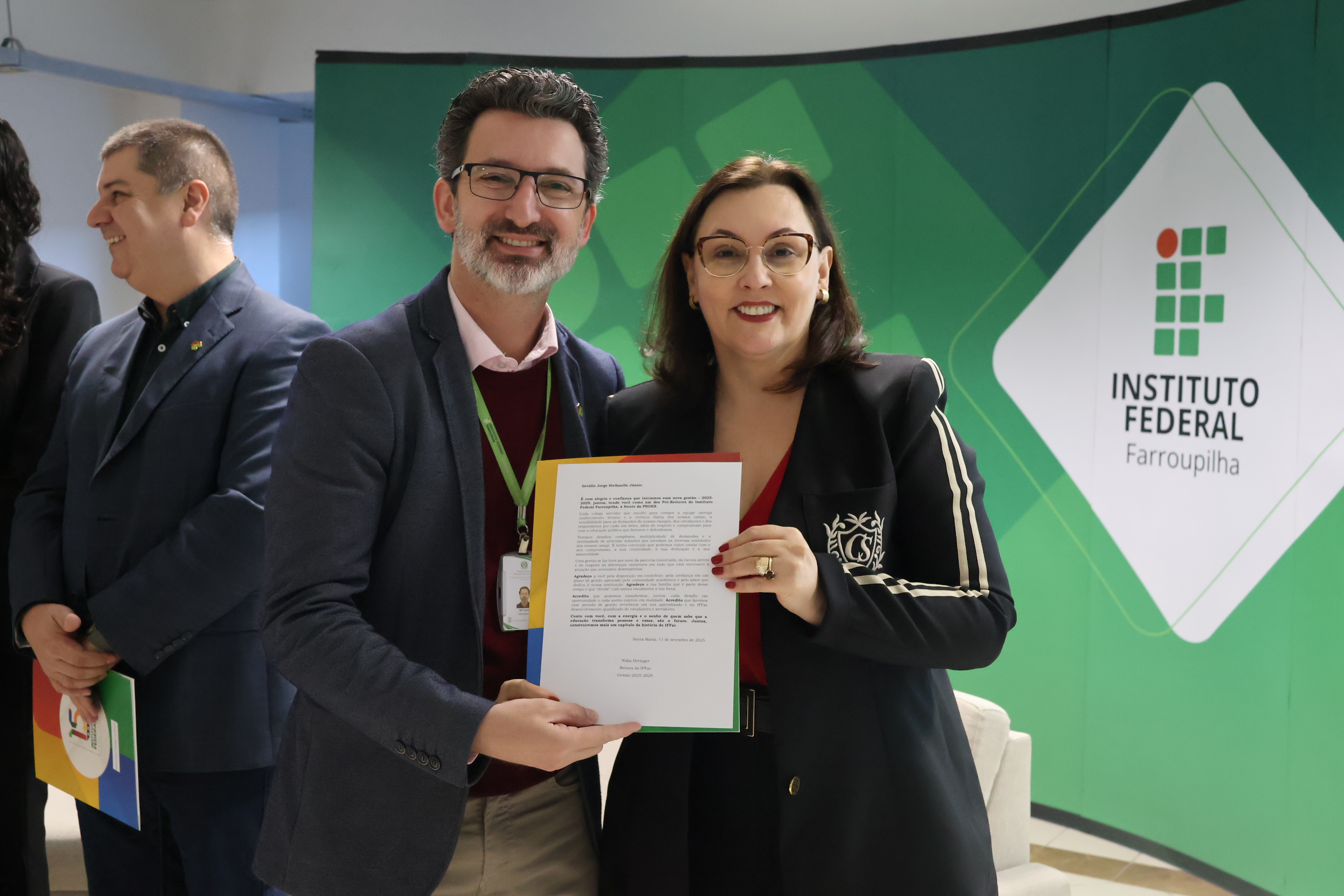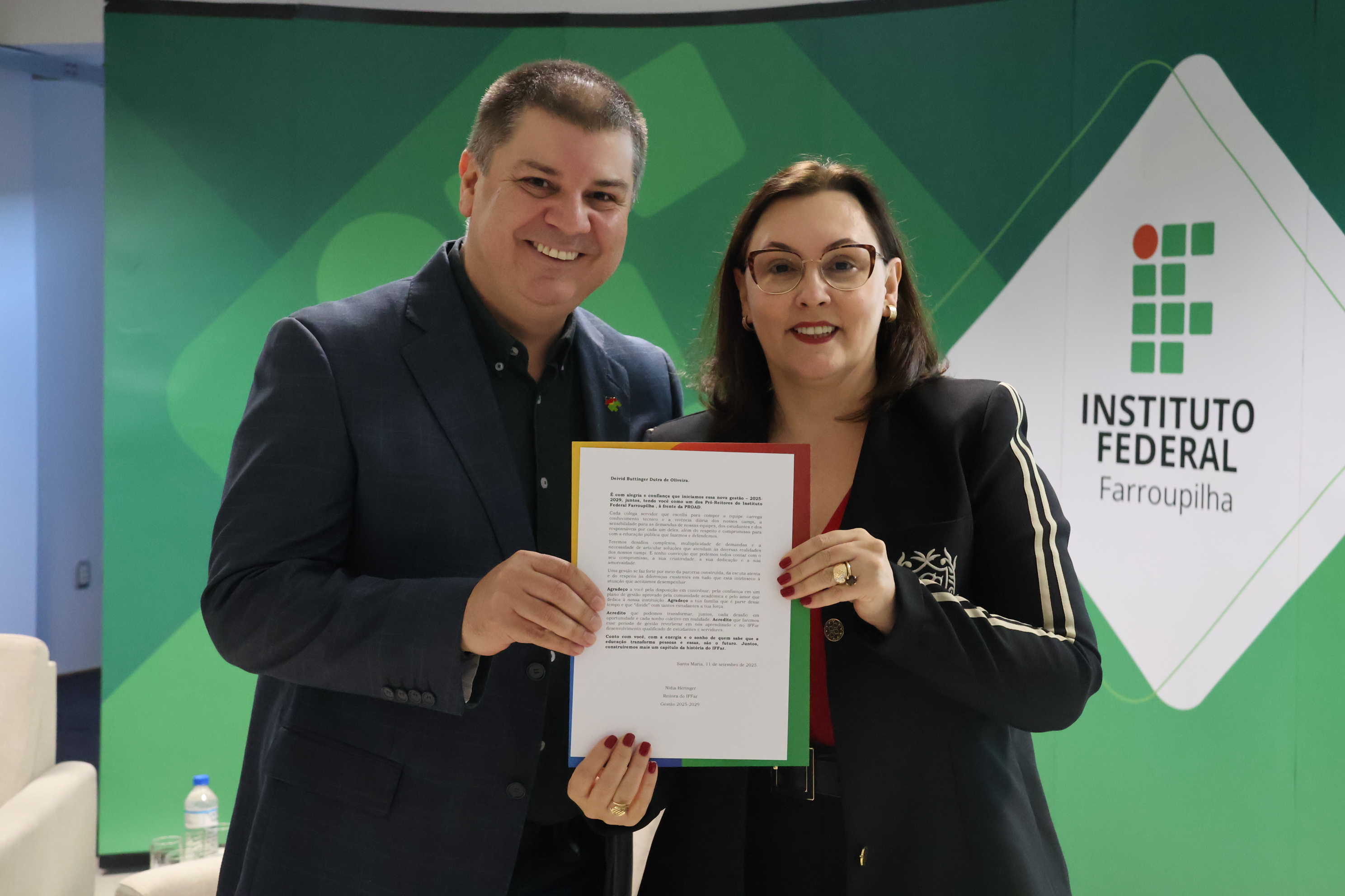 No mês passado, a professora Nídia Heringer foi oficialmente reconduzida ao cargo de reitora do IFFar. A cerimônia teve a participação do ministro da Educação, Camilo Santana, autoridades, imprensa, servidores e cerca de 400 estudantes.