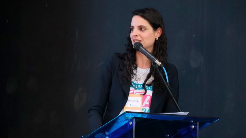 Foto: professora Thirssa Grando fala durante Mept 2025, em Santa Rosa (crédito: arquivo/Secom)
