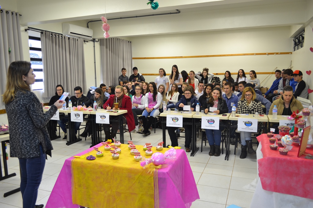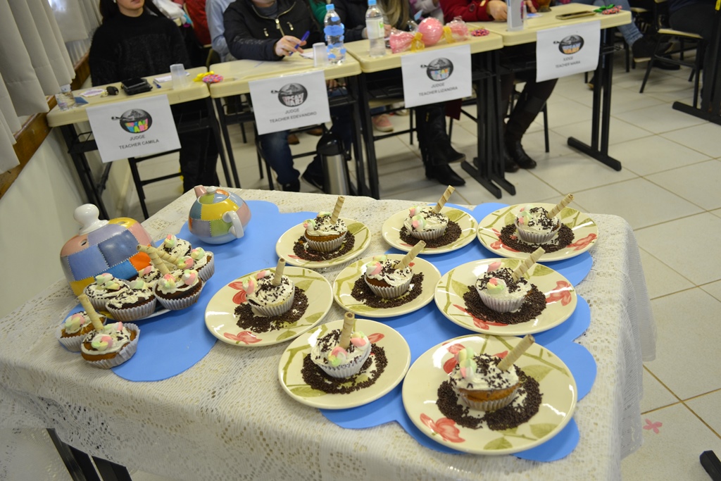 A atividade foi organizada pela professora de Inglês, Miquela Piaia, que, após ter trabalhado no ano passado com a turma os gêneros textuais, dentre eles as receitas culinárias, decidiu retomar o conteúdo esse ano propondo a Batalha dos Cupcakes.