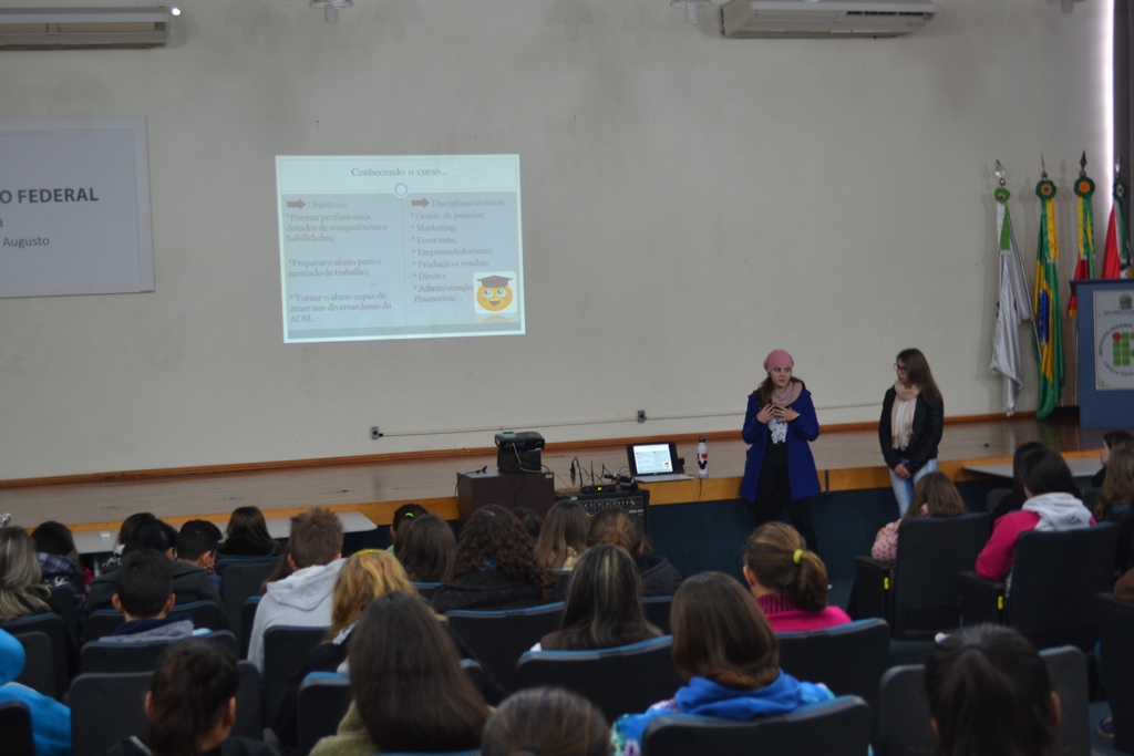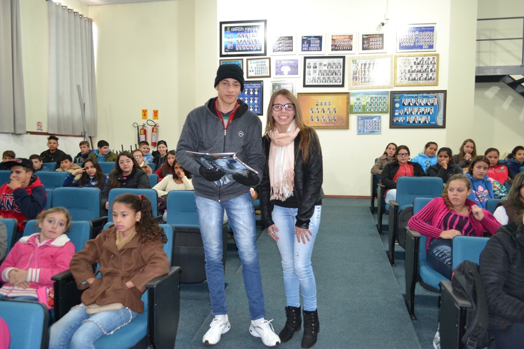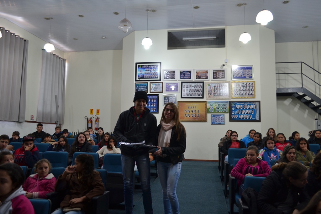 O grupo, formado por alunos da Escola Municipal Lenira de Moura Lutz, do Instituto Educacional Estadual Fagundes Varela, da Escola Estadual de Ensino Fundamental Pontão dos Buenos e da Escola Estadual de Ensino Fundamental Osmar Hermann, foi acompanhado pela Coordenadora do Eixo de Gestão e Negócios, professora Lizandra Forgiarini Lucca, e pelos alunos do curso técnico em administração, Bruna, Luana, Camila, Sebastião, Talia e Thais.
