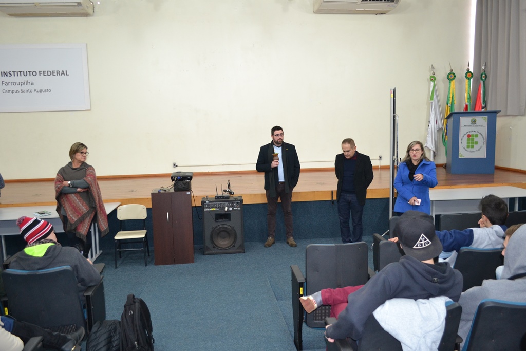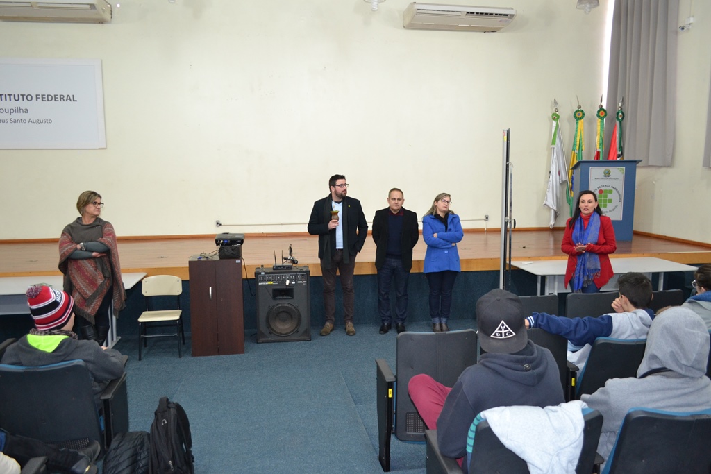 O Campus Santo Augusto recebeu nos dias 19 e 20 de junho a visita da Reitoria Itinerante. Na segunda-feira, dia 19, a Reitora Carla Comerlato Jardim e os pró-reitores participaram no auditório de uma reunião com discentes representantes dos cursos noturnos da instituição e, na sequência, houve uma reunião com a equipe diretiva do campus.