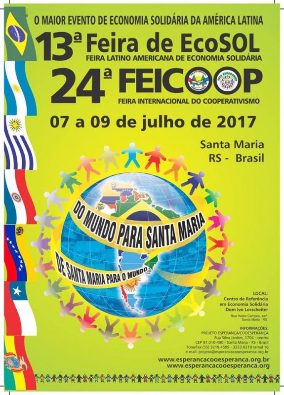 13ª Feira de EcoSol e 24ª Feicoop - de acordo com a organização, trata-se do maior evento de Economia Solidária da América Latina. Em 2016, a feira recebeu 248 mil visitantes de 16 países. Além do seminário, o IFFar também participará da cerimônia de abertura, nesta sexta-feira (7), às 16h. A reitora do IF Farroupilha, Carla Comerlato Jardim, estará presente na solenidade.