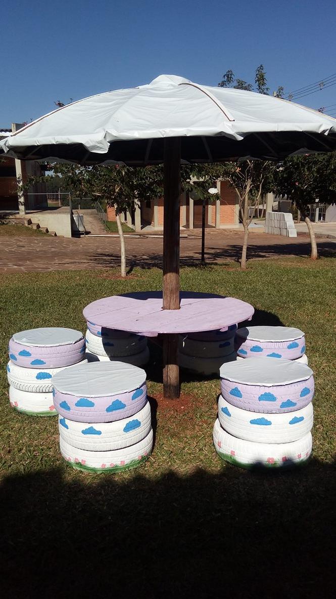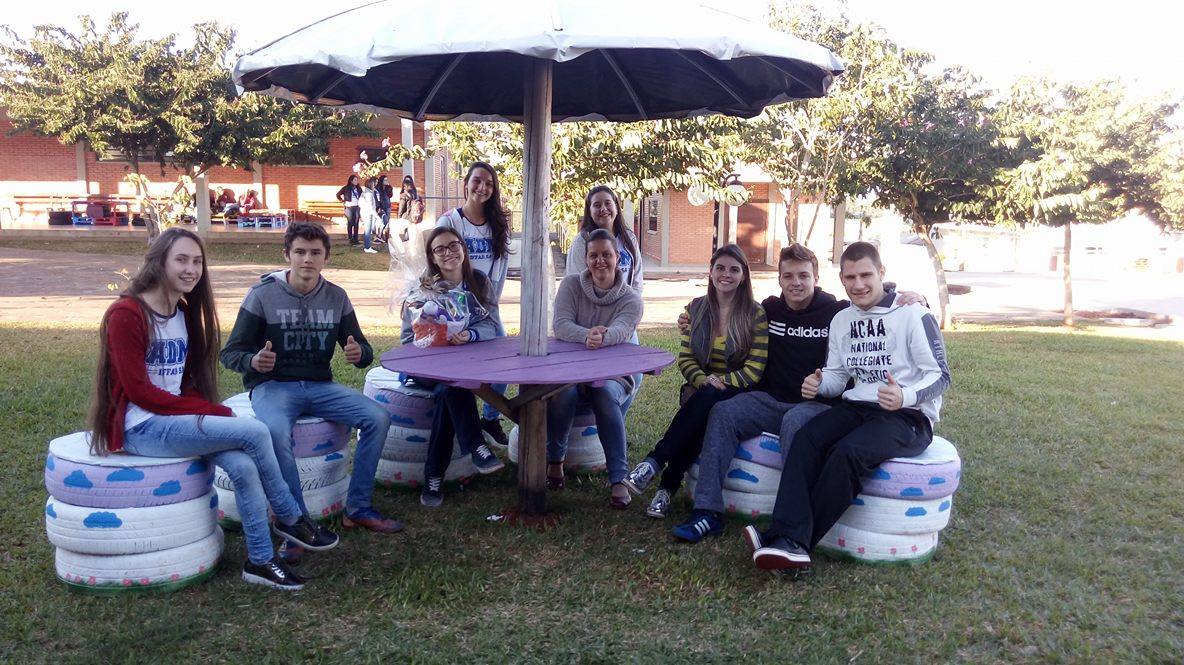 As professoras do Campus Santo Augusto Lizandra Forgiarini Lucca e Téoura Benetti desenvolveram com os alunos do 2º ano do Curso Técnico em Administração, dentro das disciplinas de Produção e Arte, um projeto de construção de objetos de Mobiliário Urbano com materiais reutilizáveis, como pneus e pallets.