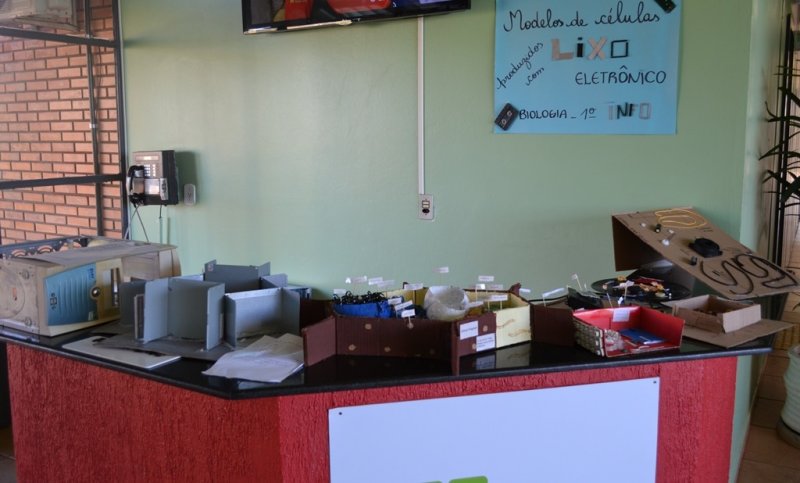 Segundo a professora, o objetivo da atividade foi sistematizar os conceitos estudados em relação ao estudo da estrutura da célula eucariótica, caracterizando suas organelas quanto à estrutura e suas funções. Para construir os modelos de células, os alunos utilizaram resíduos de lixo eletrônico e recicláveis, que foram arrecadados nos grupos de trabalho.
