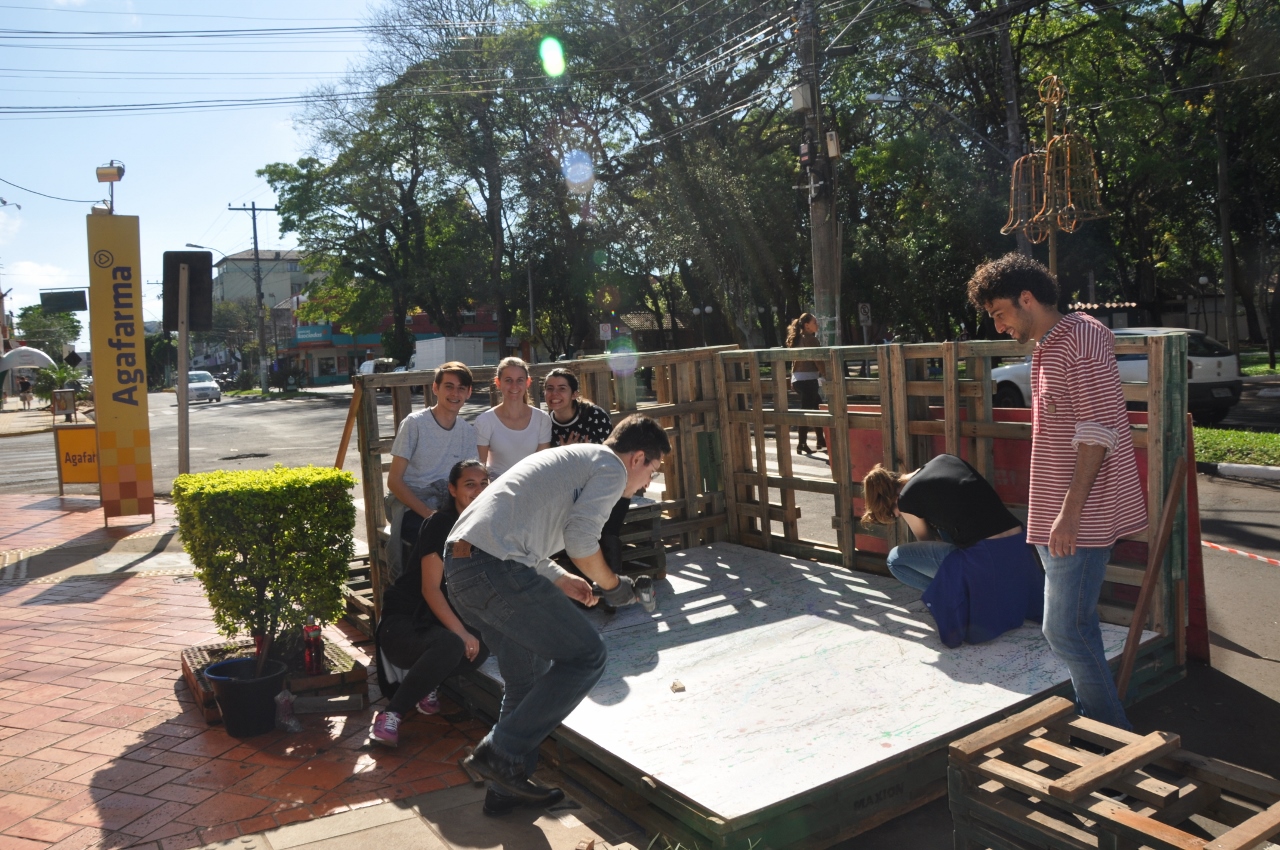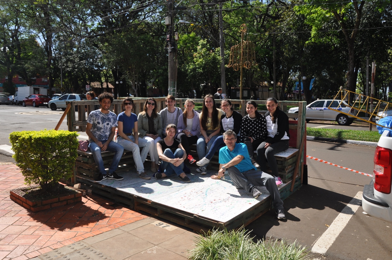 Curso de Arquitetura e Urbanismo instala parklet em rua de Santa Rosa