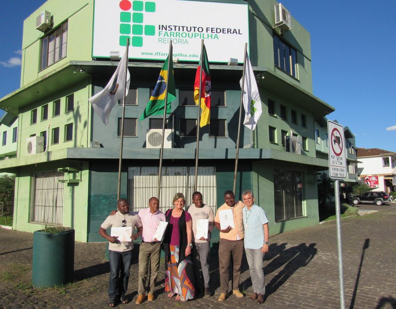 Quatro professores moçambicanos - Ibraimo Leonardo, António Matabeira Joaquim Joia, Leonel Castigo Machanguangua, Alírio Dioníldio Jeremias Matavel -, participantes do Programa de Formação de Formadores de Moçambique em Ciências Agrárias, iniciaram, nesta segunda-feira (13), capacitação no Instituto Federal Farroupilha.