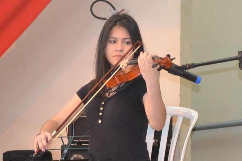 Foto: aluna do IFFar toca violino durante a V Mostra Cultural, no campus Santa Rosa