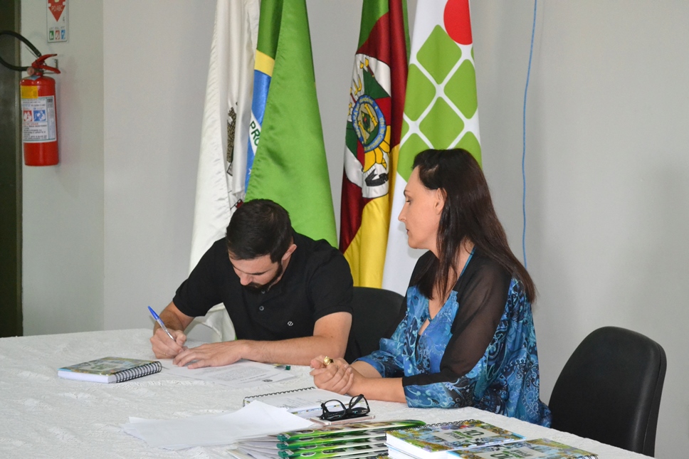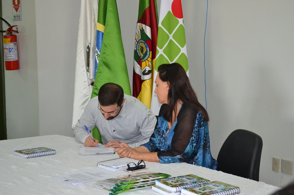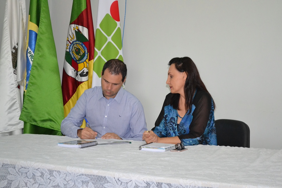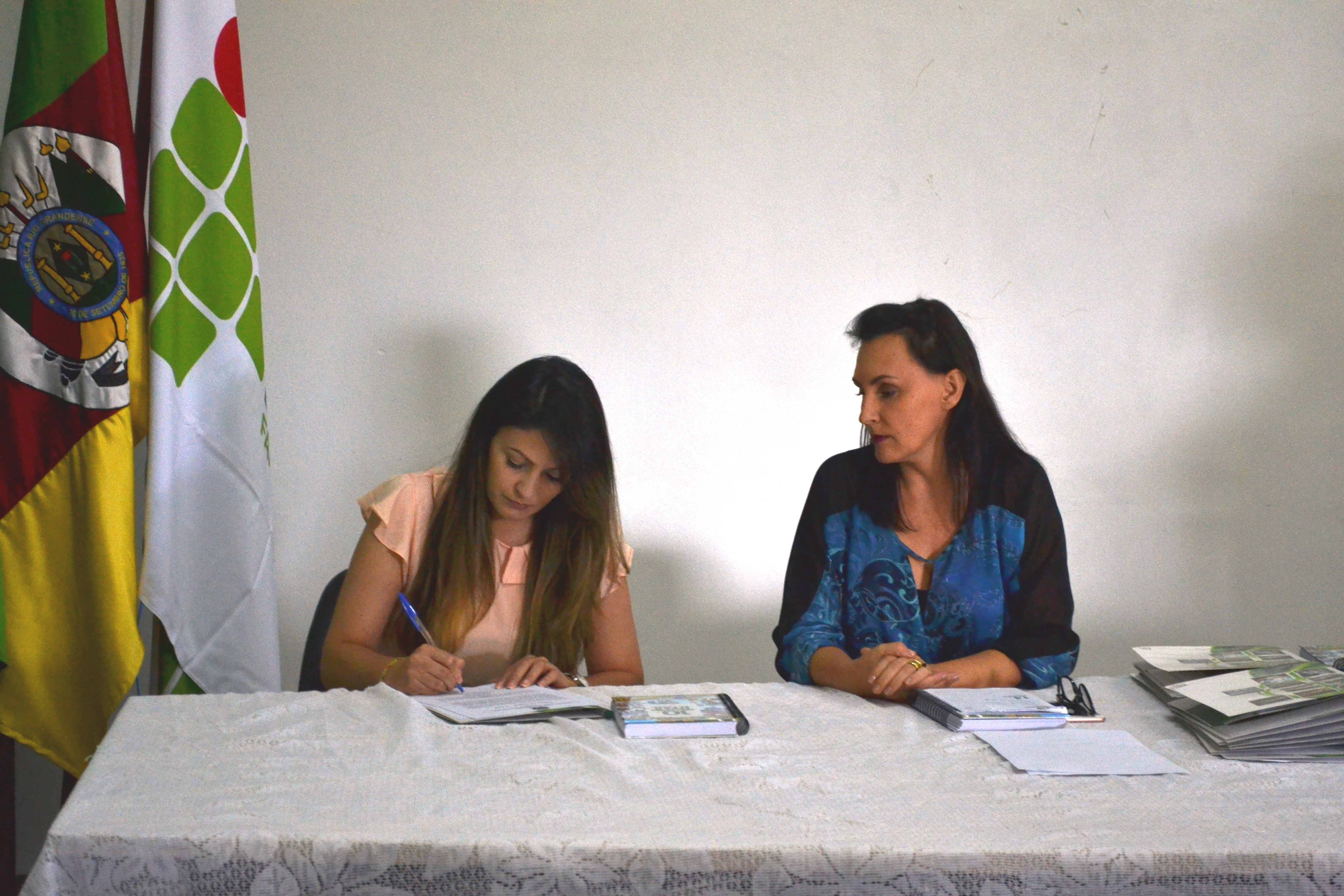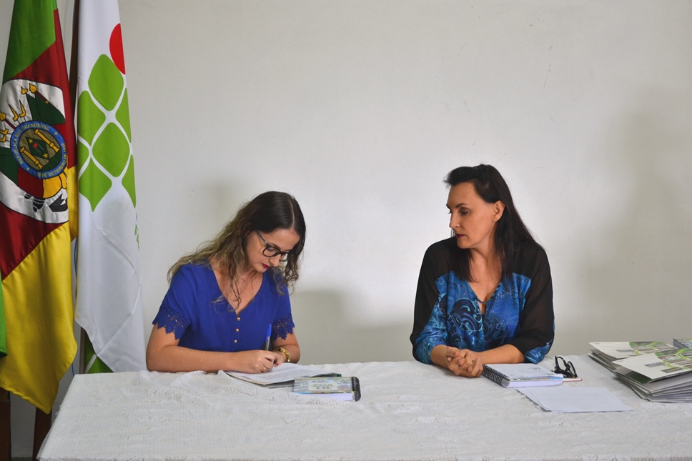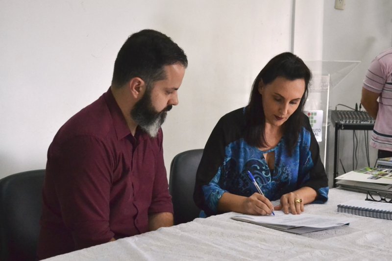 Foto: os documentos da posse foram assinados pela pró-reitora de Desenvolvimento Institucional do IFFar, Nídia Heringer