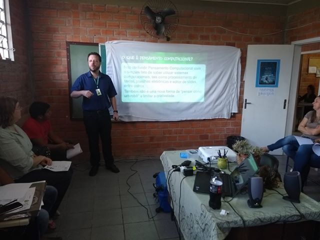 Na manhã de hoje (27), o professor do IFFar Christian Puhlmann Brackmann ministrou uma formação sobre pensamento computacional para professores de duas escolas indígenas de Santa Maria. A atividade foi desenvolvida na Escola Estadual Indígena de Ensino Fundamental Yvyra’ija Tenondé Vera Miri da etnia guarani.