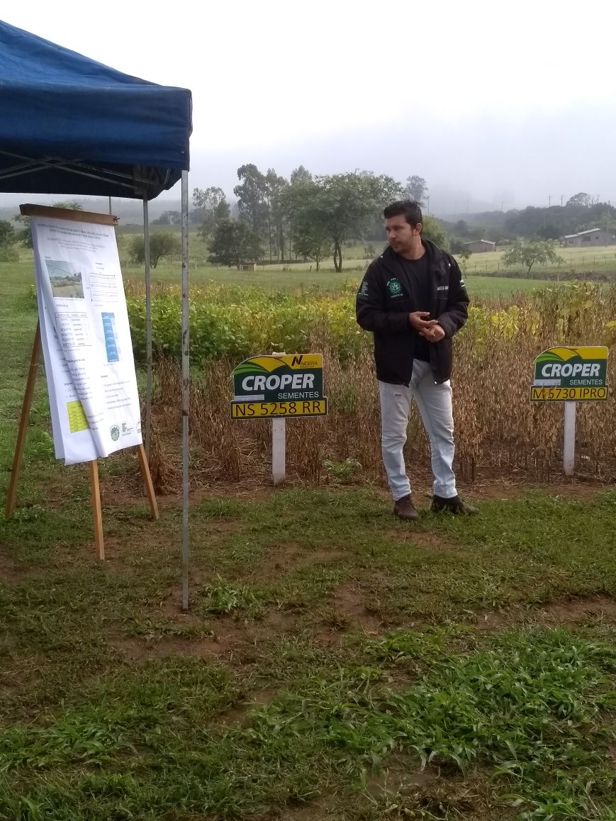 Os ensaios com cultivares de soja são resultados parciais de projeto de pesquisa coordenado pelo professor Rodrigo Machado. São também Trabalho de Conclusão de Curso do discente do curso de Engenharia Agrícola, Márcio Ibarra. O trabalho é fruto de uma parceria que vem sedo realizada com o Sindicato Rural de Manoel Viana. O tema “gesso agrícola” foi desenvolvido pelo professor Douglas Dalla Nora, que possui vasta experiência sobre o assunto e possibilitou muitas discussões acerca de manejo do solo.