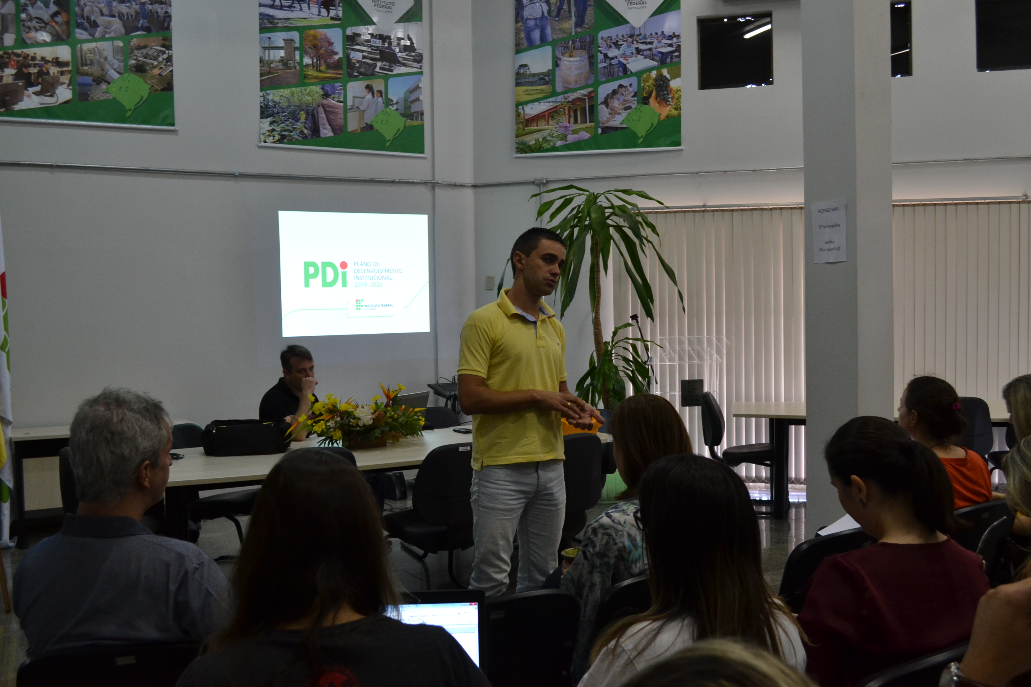 Hoje (10), às 9h, os servidores da Reitoria se reuniram no auditório para conclusão da etapa inicial de elaboração do Plano de Desenvolvimento Institucional (PDI) do IFFar. Neste encontro, foram validadas as prioridades definidas pelos servidores na última reunião, as quais foram discutidas em grupos de acordo com as seguintes perspectivas: a) processos internos, b) sustentabilidade financeira e ambiental, c) pessoas e infraestrutura e d) aluno e sociedade.